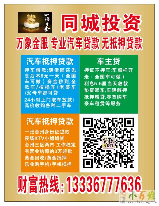台州汽车抵押贷款13336777636台州万象贷款公司
